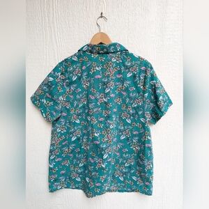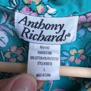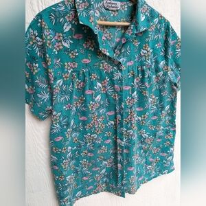 Anthony Richards Teal Flamingo Button Down Smock Top Pockets Size Large