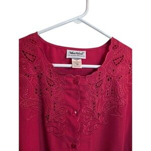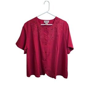 Anthony Richards Vintage Satin Button Front Embroidered Short Sleeve Blouse 18W