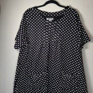 Anthony Richards Woman's Plus Black/White Polka Dot Pullover Short Sleeve Top
