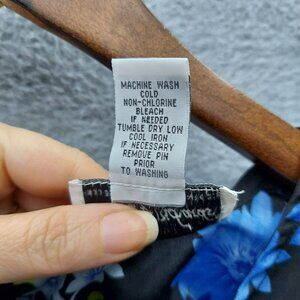 Anthony Richards Womens Floral Short-Sleeve Blouse Size 1X Black/Blue Polyester