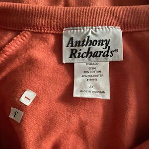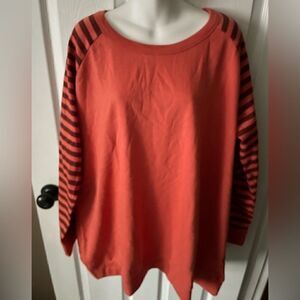 Anthony Richards Womens Rust Orange Striped Sleeves Sweatshirt Size 2X NWOT. 🧡 I ship immediately! Smoke free / pet friendly home .