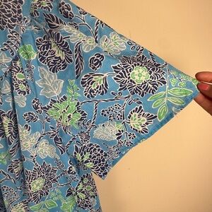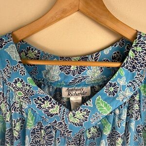 Anthony Richard’s Women's Size Large House Dress Muumuu Blue Floral Ruffle Hem