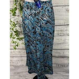 Anthony Skirt size Medium Blue Silver Black Swirls Long A Line Stretch Modest