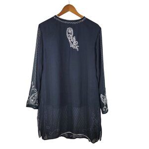 Anthony Tunic Top Plus 1X Lightweight Button Up Black Semi-sheer Embroidered