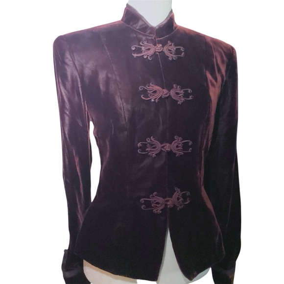 Anthony Vask Jacket/Shirt…Snap plus Frog Closure…Size 8…Deep Wine Color…Material has some Stretch…Velvet…