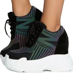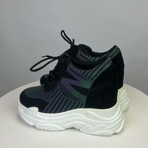 Anthony Wang Blueberry Black Platform Iridescent Reflective Sneakers Siz…