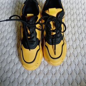 Step out in style with these chic women's wedges. Featuring a vibrant yellow design with sleek black accents, these shoes are perfect for any occasion.
