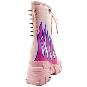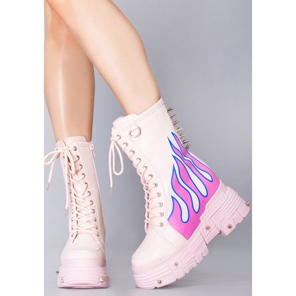 Turn up the heat with the Sweet Inferno Platform Boots by Anthony Wang! These cute yet edgy festival boots feature a vegan leather outer, lace up front, printed flame details, stud details, and chunky soles. #FlameOn