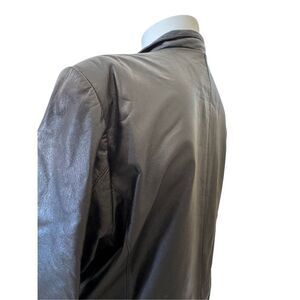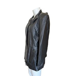 Anthony’s women’s black leather jacket M motorcycle biker 90s trench coat button