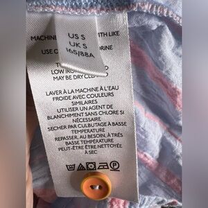 Anthopologie Maeve Striped Top Tiered Sleeveless Lightweight cotton baby blue and pink vertical stripe
