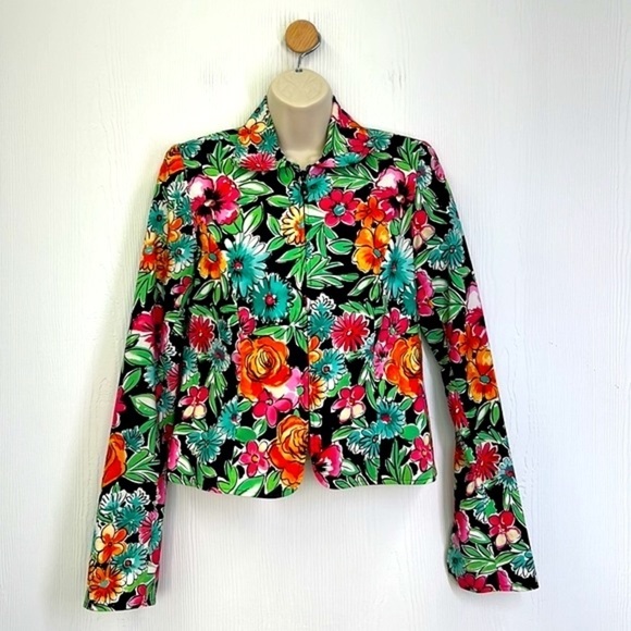 Anthracite - Bright Bold Floral Zip Up Shoulder Pad Blazer Size 4