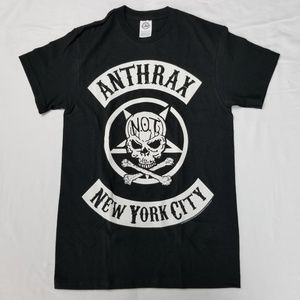This listing is for ONE Anthrax Biker Skull New York City NYC Licensed Concert Tour Trash Metal Band Merch T-Shirt.