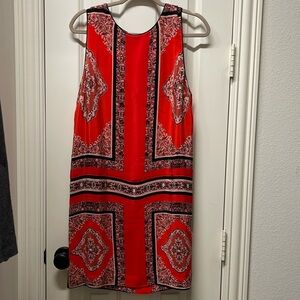 Super cute and very comfortable Anthro silk dress. Exposed zipper in back. The most vibrant beautiful colors. In excellent condition. Size 14