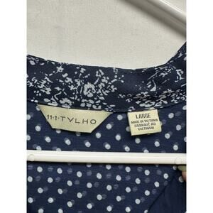 Timeless and effortlessly chic — this 11:1 TYLHO navy dress is covered in classic white polka dots with a contrasting floral tie neckline for a subtle twist 🌿. Lightweight and flowy rayon drapes beautifully, giving it that easy swing silhouette that flatters every shape. Pair it with boots for fall or sandals for spring. Fully lined through the body, sheer sleeves with button cuffs, and that perfectly vintage feel without trying too hard.