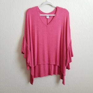 Features: Beautiful flutter sleeves, asymmetrical hem, v-neck and super soft ribbed material.