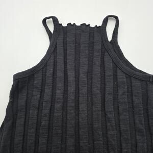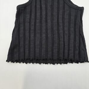 Anthro Akemi Kin Top Womens Medium Black Tank Crop Sweater Lettuce Hem Rib Kaden