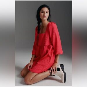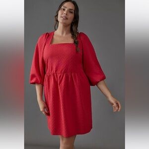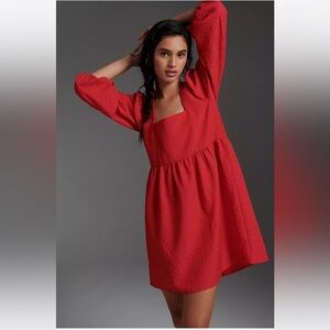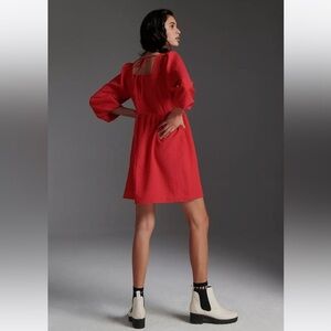 Anthro Amadi Esther Babydoll Mini Dress - Size L Red NWT