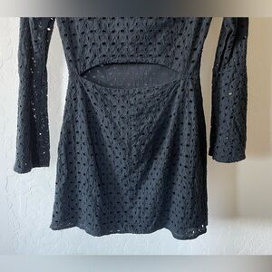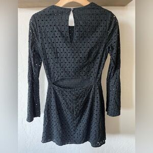 Anthro/ Avec Les Filles| Black Eyelet Dress with Bell Sleeves, Size XS•••