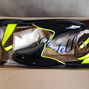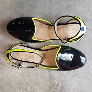 Anthropologie, Chatells - Paris, Black patent, Yellow piping, NEW, BOX, heel: 1/2 inches, Size EU37, TTS, Made in Portugal
