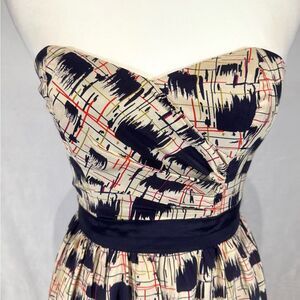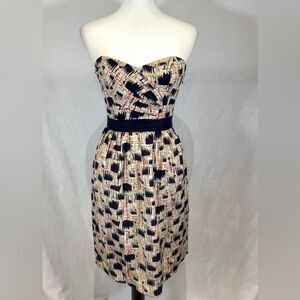 Anthro Burlap Silk geo scratch print sweetheart corset strapless dress size 0