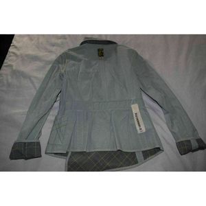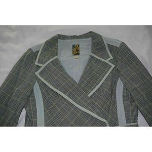 Anthro Burning Torch Jacket Blue Reversible Orange Plaid Asymmetrical USA Made L