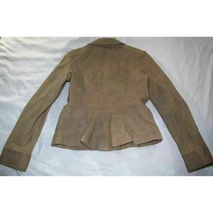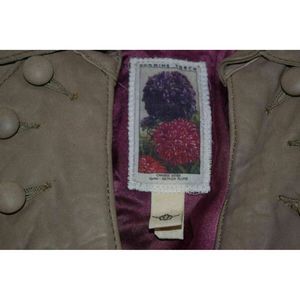 Burning Torch Leather Jacket M Blazer Beige Brown Anthro Peplum Back