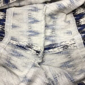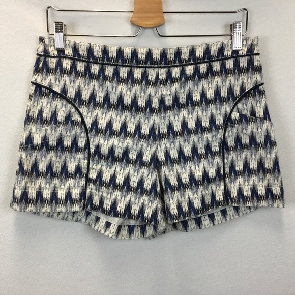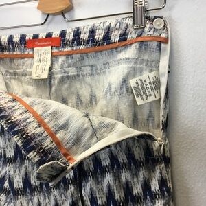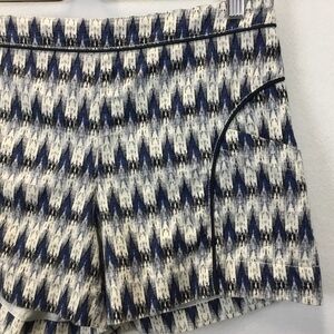 Anthropologie Cartonnier Larimar Ikart Pattern Shorts. Side zipper and button closure. 2 pockets in front. White, blue and black geometric print. Black trim. Size 4.