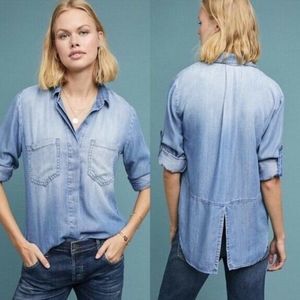 Anthro Cloth & Stone Split Tail Chambray Blouse