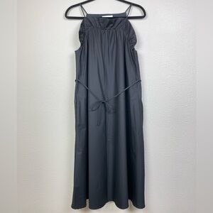 Anthro Corey Lynn Calter Harper Midi Dress Women's Large Poplin Tie Waist Black