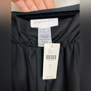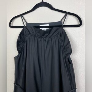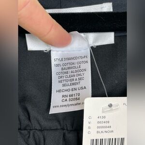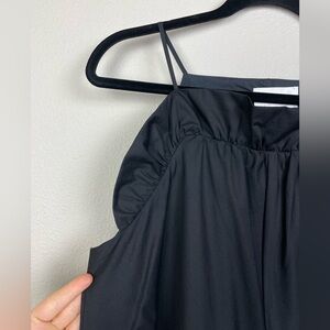 Anthro Corey Lynn Calter Harper Midi Dress Women's Large 100% Cotton Poplin Tie Waist Black NWT Evening Event Travel Vacation Minimalist Classic Ruffle Top
