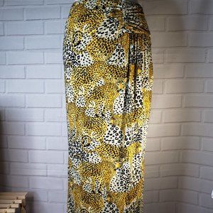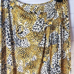 Anthro Corey Lynn Calter Yellow Leopard Midi Skirt S small Black Cheetah