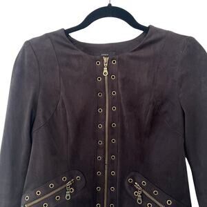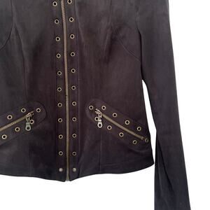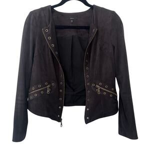 Anthro DREW Faux Suede Leather Moto Jacket w/Grommet Details in Black Size XS