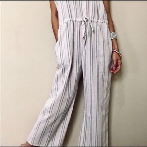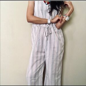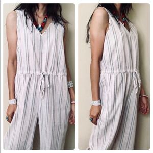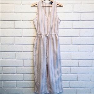 Anthro DREW Pink Gray Stripe V Neck Drawstring Sleeveless Wide Leg Jumpsuit XS