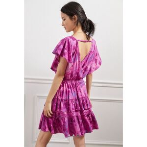 Anthro Daily Practice Tiered Ruffle Mini Dress Pink Purple YCX Print Small
