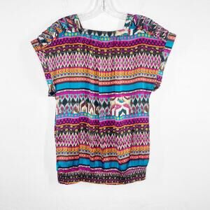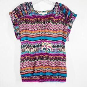 Anthro Daniel Rainn Silk Short Sleeve Aztec Pattern Boho Blouse Top Small