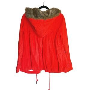 Anthro Daughters of the Liberation Fur Hood Full Zip Utility Parka Red XS Winter
