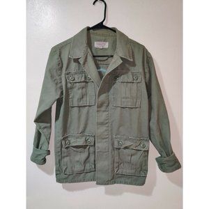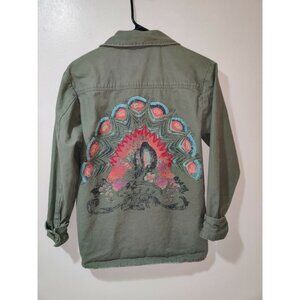 Anthro Ecote Women's XS Field Jacket Military Green Pockets Buttons Embroidered
