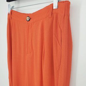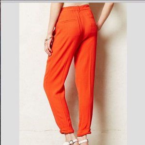 Anthro Elevenses Avoch Cropped Crepe Pants Orange