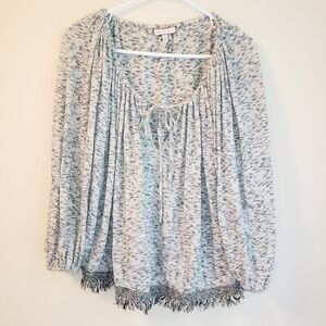Anthropologie Eri + Ali Space Dyed Lightweight Sweater with Raw/Fringed Hem