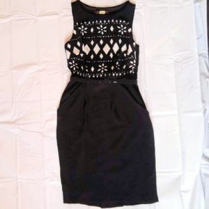 EUC Geometric Cutout Black & White Sheath Dress Anthropologie's Eva Franco Size 4