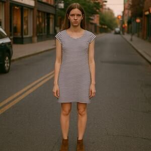 Anthro Everly Dress Women's Size Small Monochrome Midi Classic Cap Sleeves