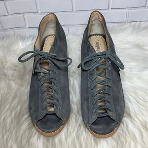 Anthro Farylrobin Suede Lace-Up PeepToe Heels Sz 8