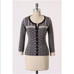 Anthro Field Flower Angora Cashmere Wool Blend Music Note Piano Cardigan Sweater