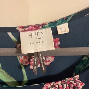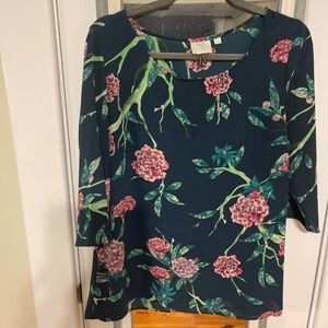 Blue, teal, green, and pink floral blouse with 3/4 sleeves, polyester
