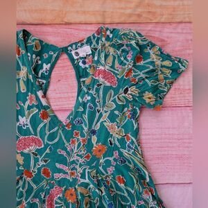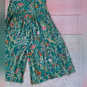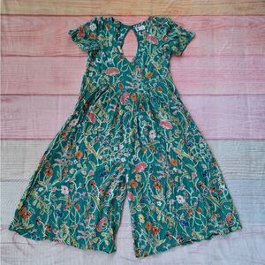 Anthro Green Yardley Floral Sleep Jumpsuit, women's Size XS Wide Leg Cropped Summer Boho