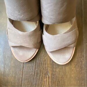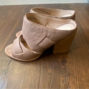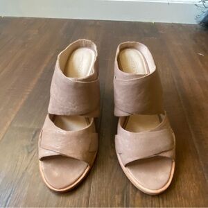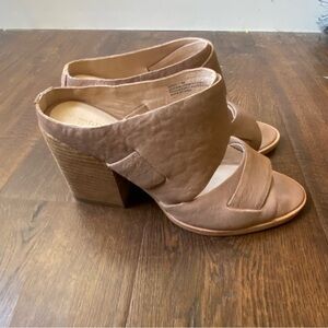 Anthro GeeWawa Banjo Mule Tan Buttery Leather Strap Open Toe Chic Heel SZ 7.5