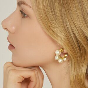 Anthro Gradient Pearl 18K Gold Plated Hoop Earrings