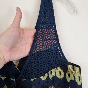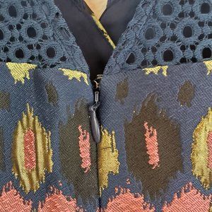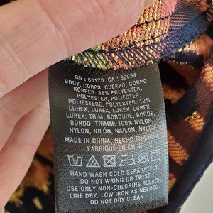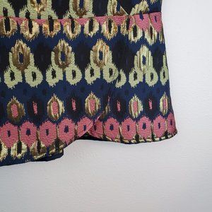 This is a gorgeous peplum top. Would look fantastic with some skinny black pants or even jeans for a night out. It has the most beautiful colors and the metallic threads elevate it to another level.