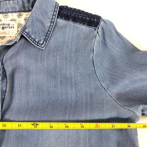 Anthro Holding Horses SIZE S Blue Chambray Denim Embroidered Button Down Women’s