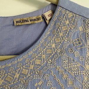 Adorable Anthropologie Holding Horses fully lined shift dress with sweet embroidered details. Back zip. Approx 16" pit to pit. 32.5" shoulder to hem. Excellent condition.